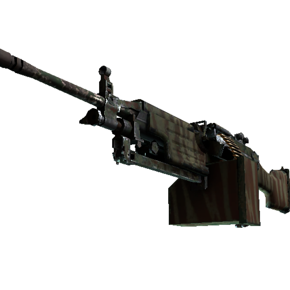 A strong open-area LMG, the M249 is the perfect choice for players willing to trade a slow fire rate for increased accuracy and a high ammo capacity. It has been spray-painted in a zebra stripe pattern.