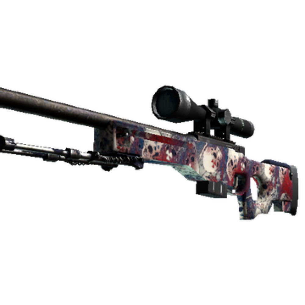 High risk and high reward, the infamous AWP is recognizable by its signature report and one-shot, one-kill policy. A multicolored hydrographic pattern has been applied. A weapon of woe