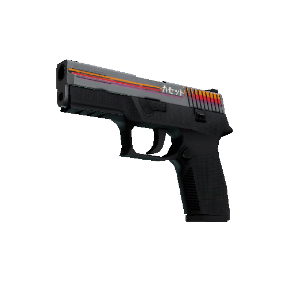 The P250 Pistol is A High Rate of Fire, Low Recoil Firearm That is a Relatively Inexpensive Choice Against Armored Opponents. The Case Has a Pattern Inspired by The Video Cassette Packages from the Nineties.